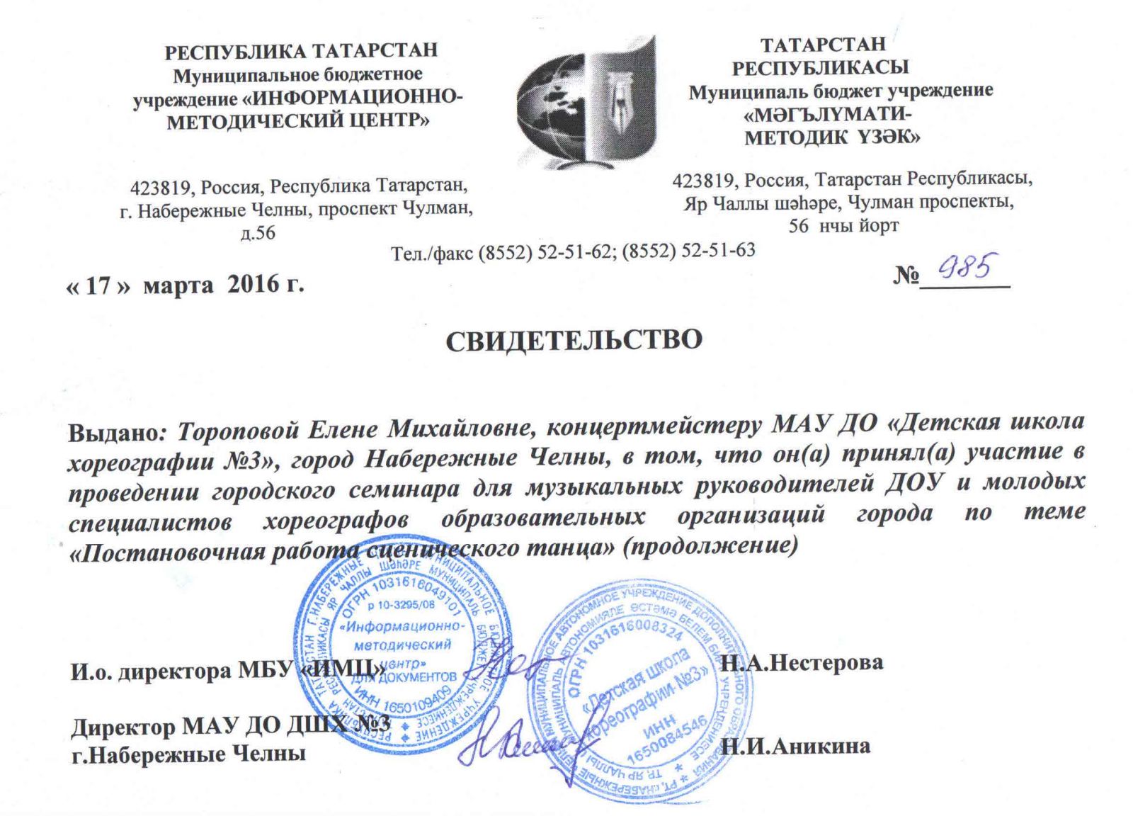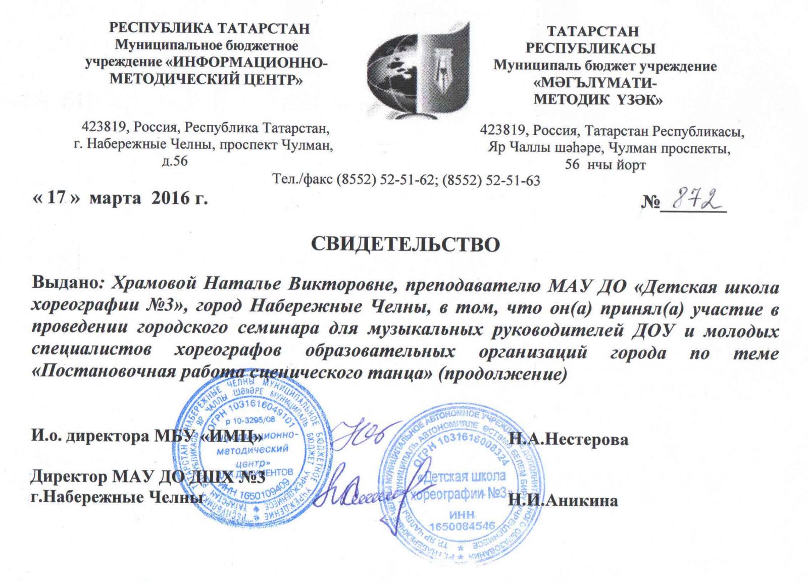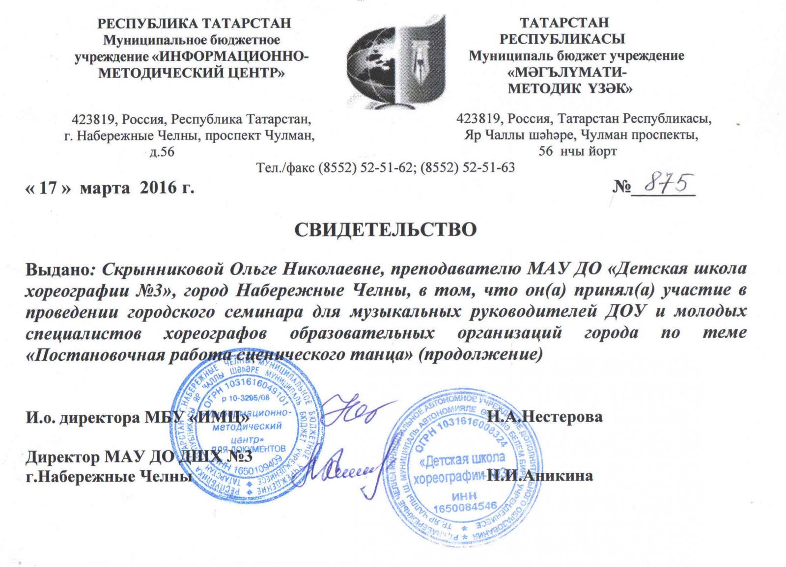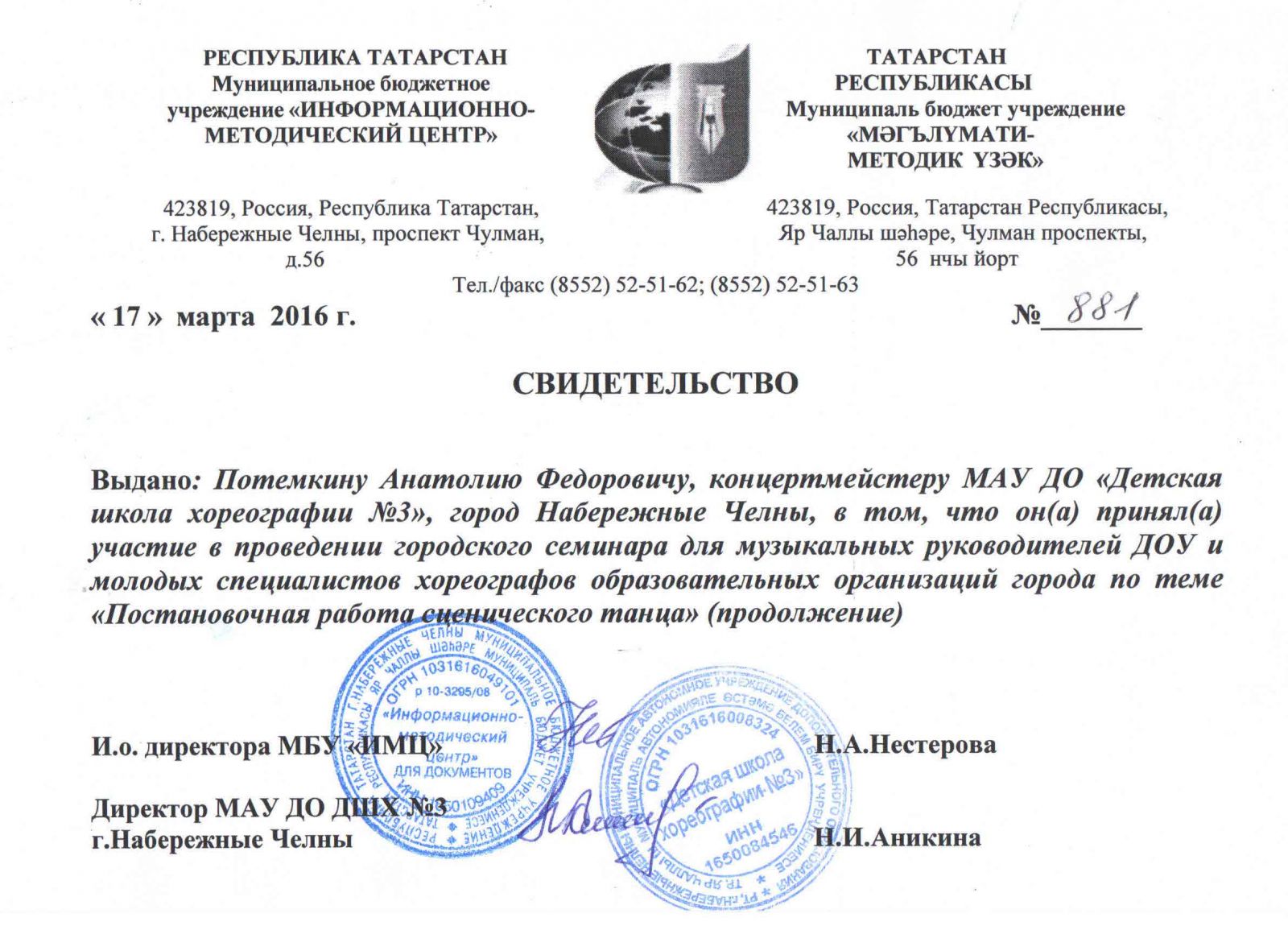Муниципальное автономное учреждение дополнительного образования города Набережные Челны "Детская школа хореографии №3" / Яр Чаллы шәһәренең "3 нче балалар хореография мәктәбе" муниципаль автономияле өстәмә белем бирү учреждениесе