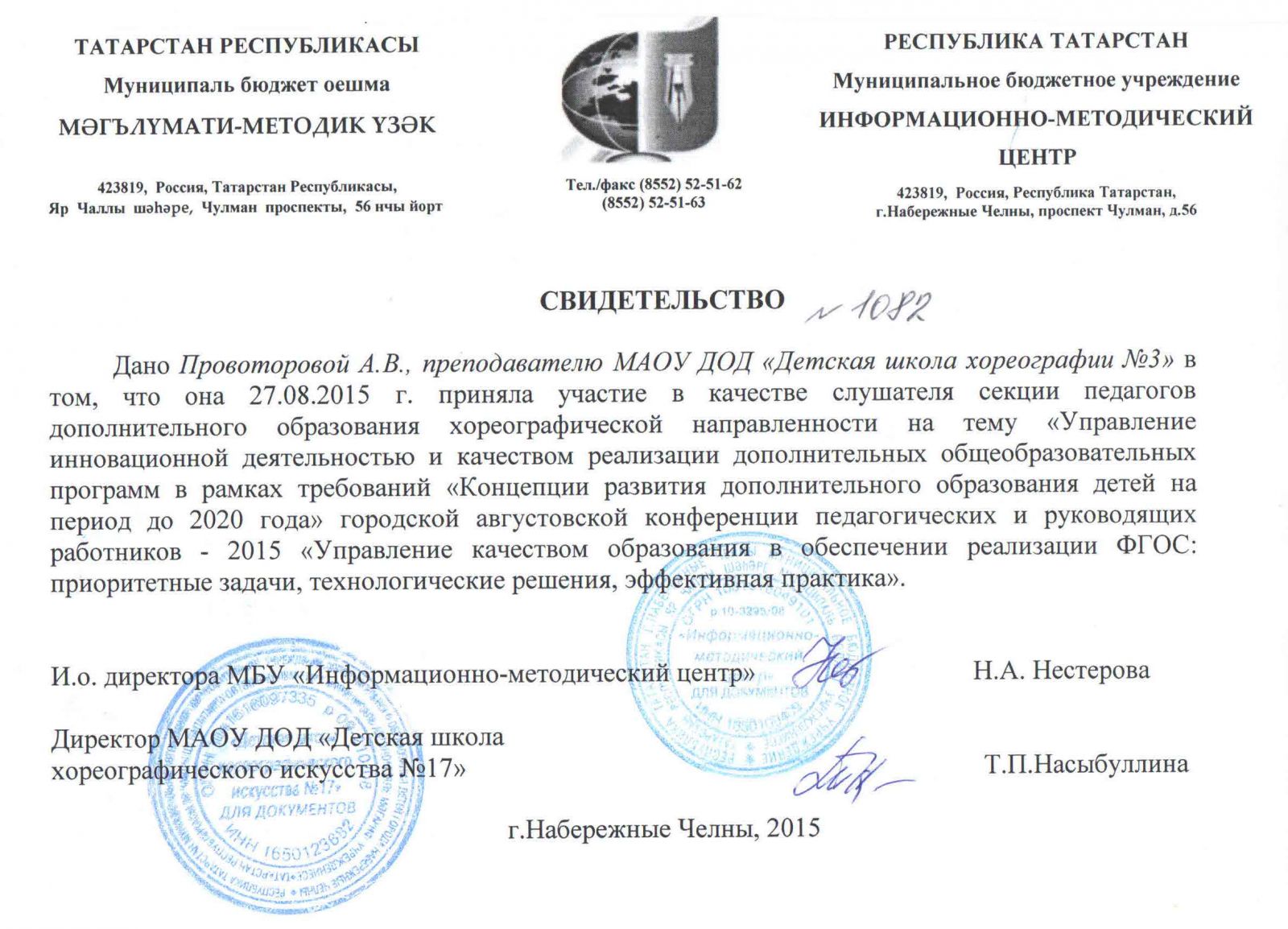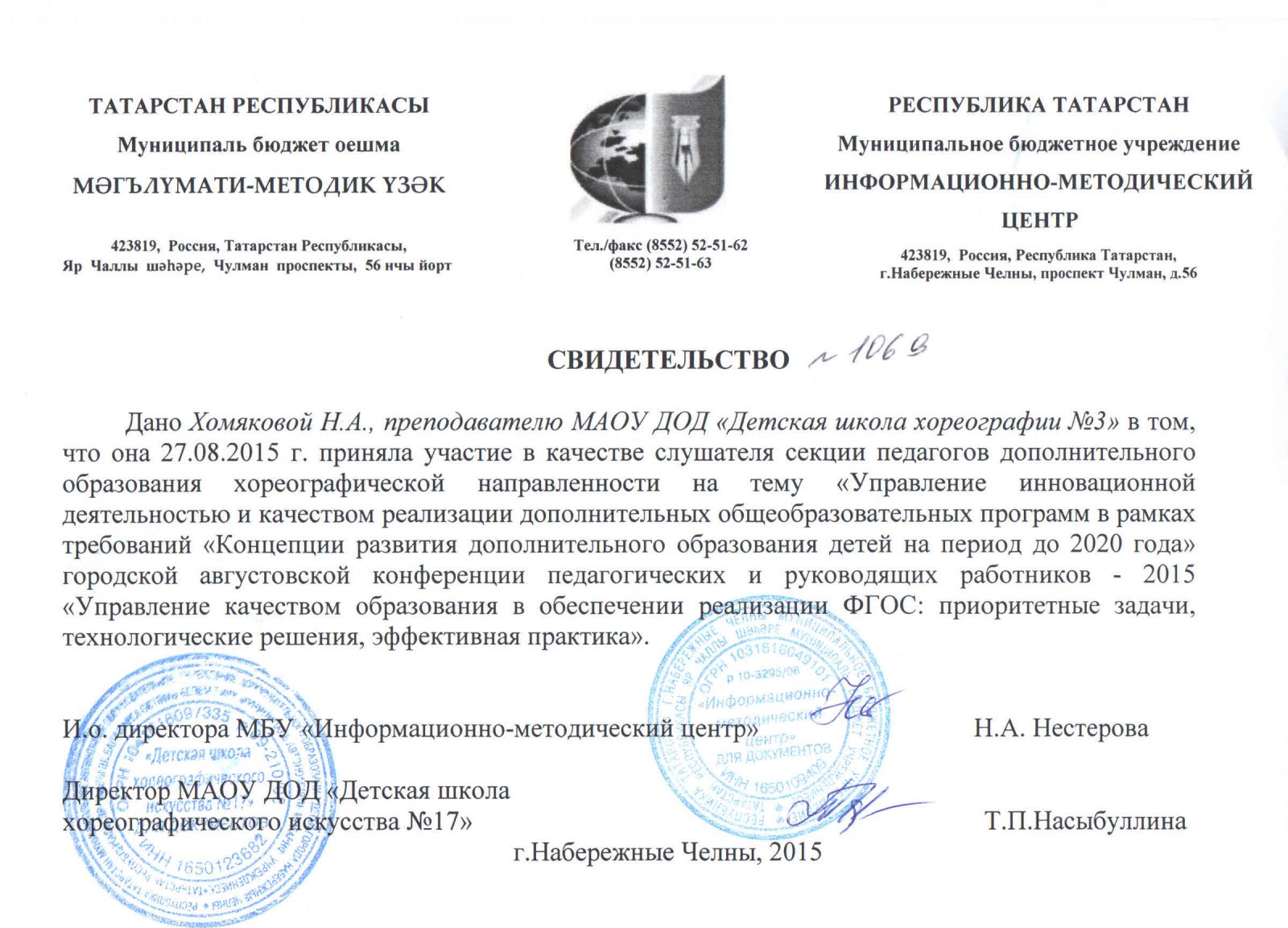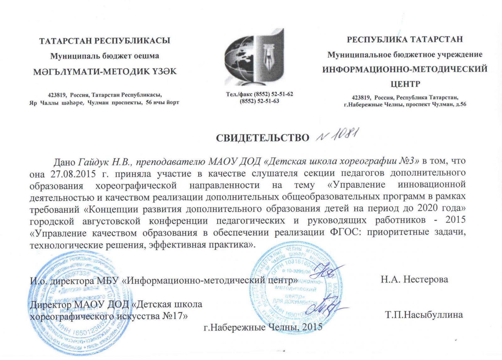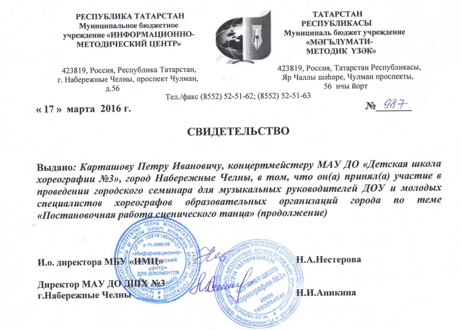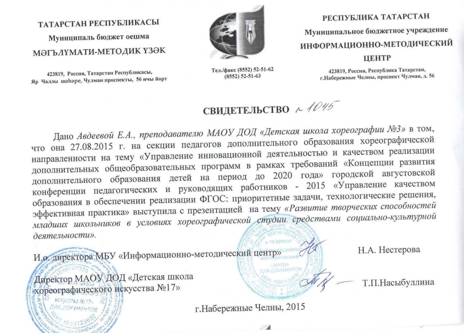 | Адрес: | 423827, Республика Татарстан, город Набережные Челны, бульвар Юных Ленинцев, дом 17 |