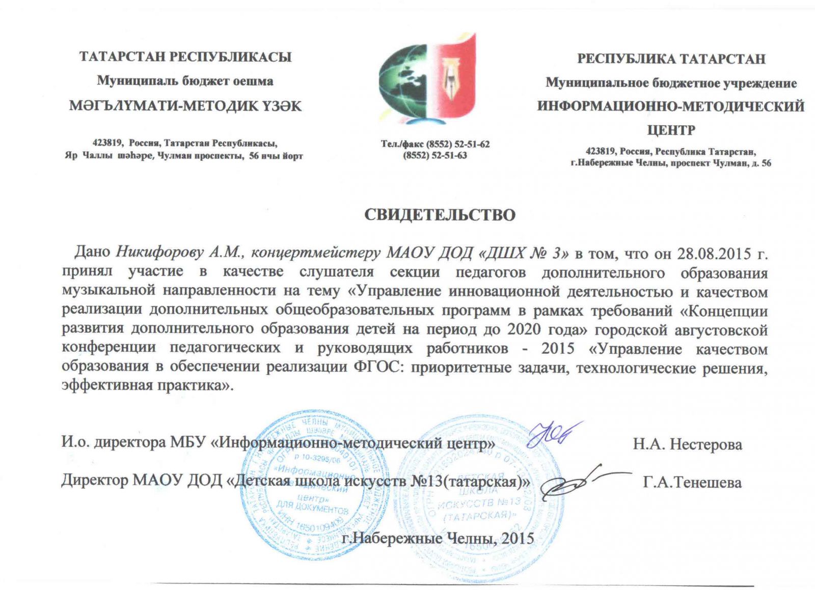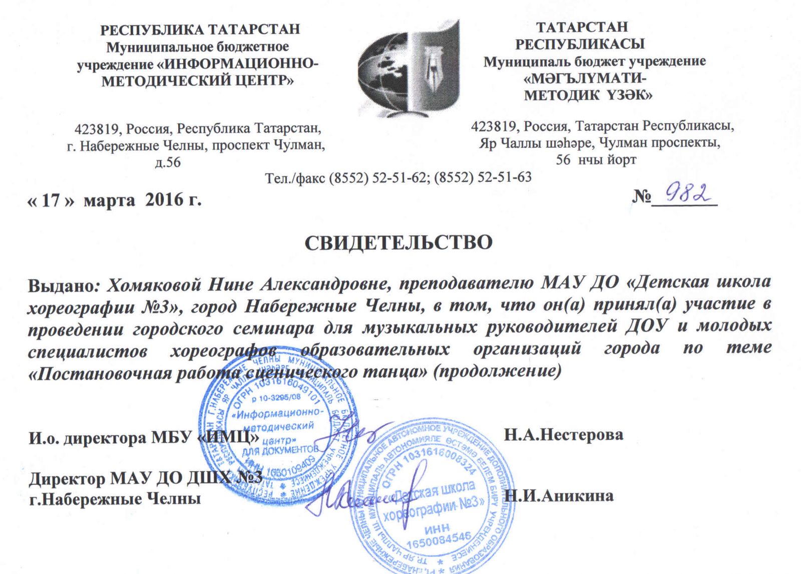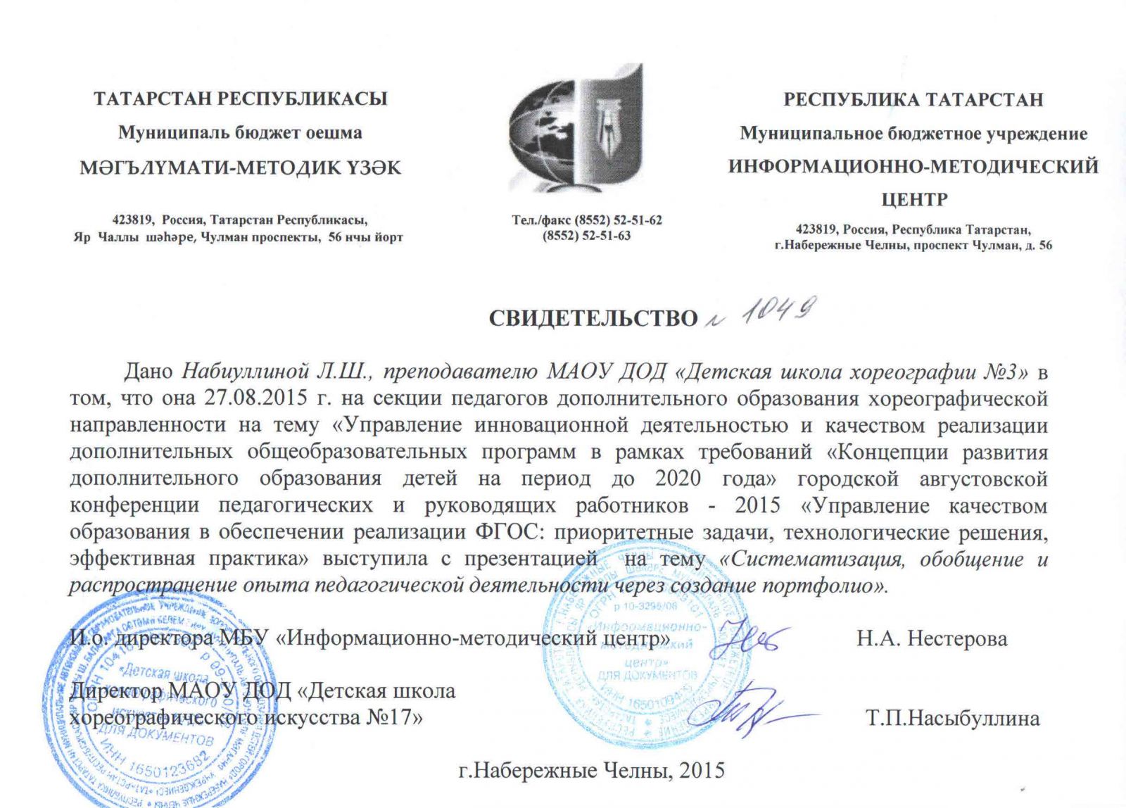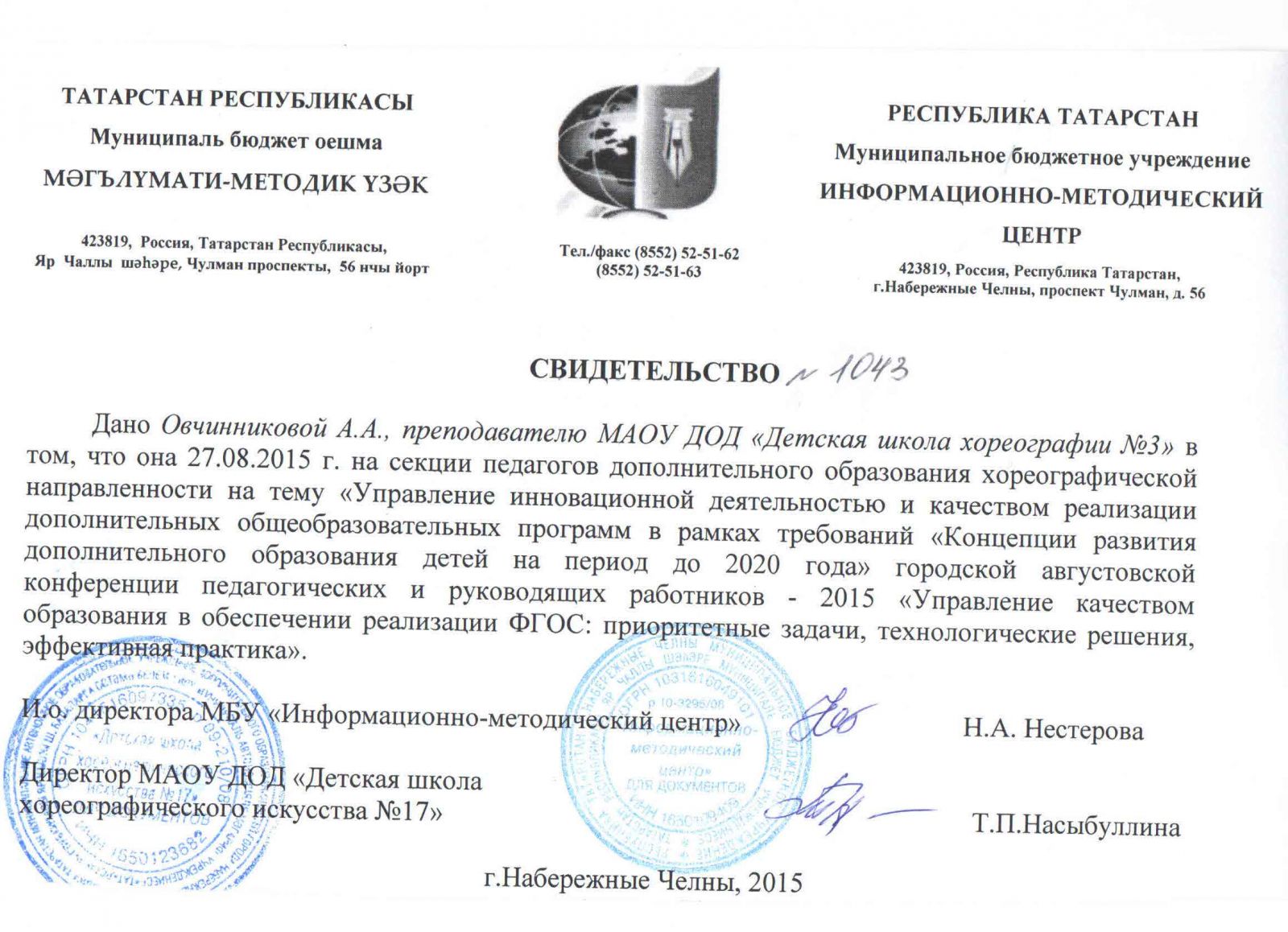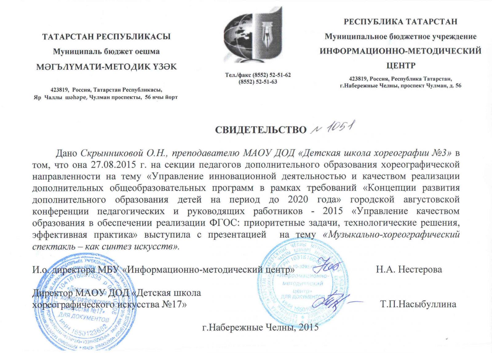 | Адрес: | 423827, Республика Татарстан, город Набережные Челны, бульвар Юных Ленинцев, дом 17 |