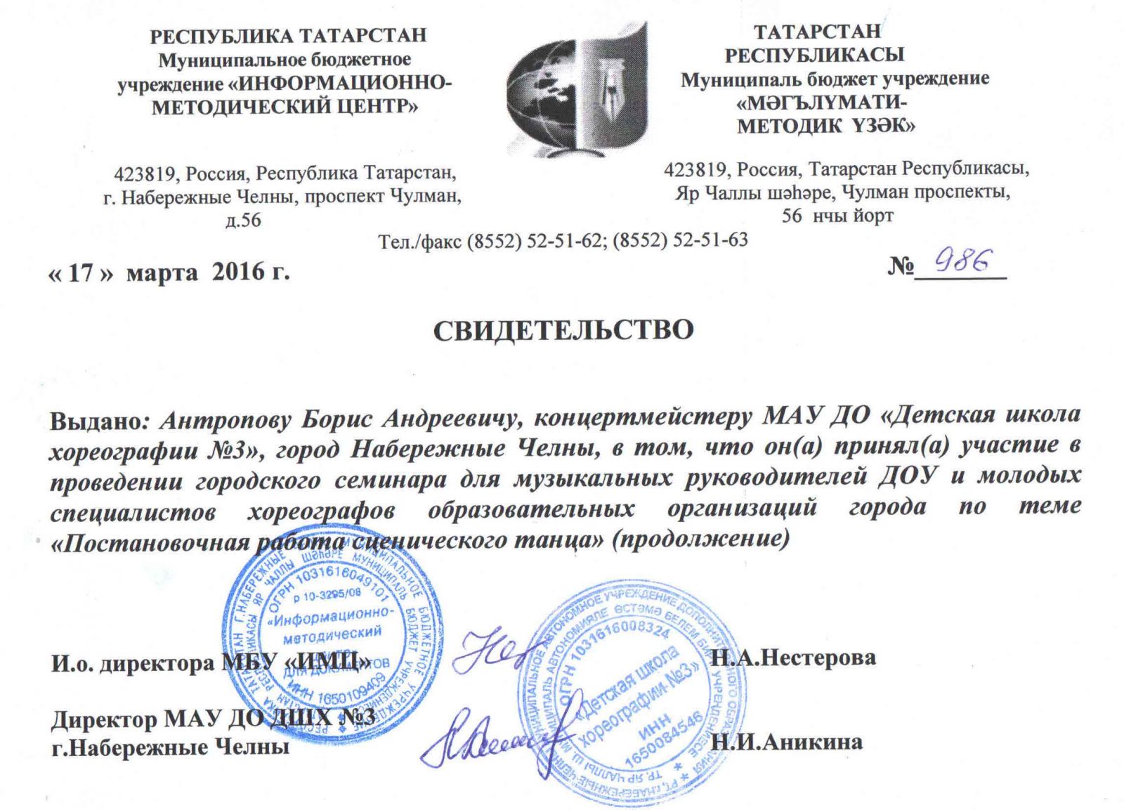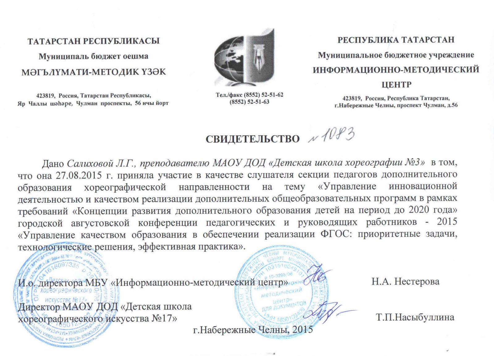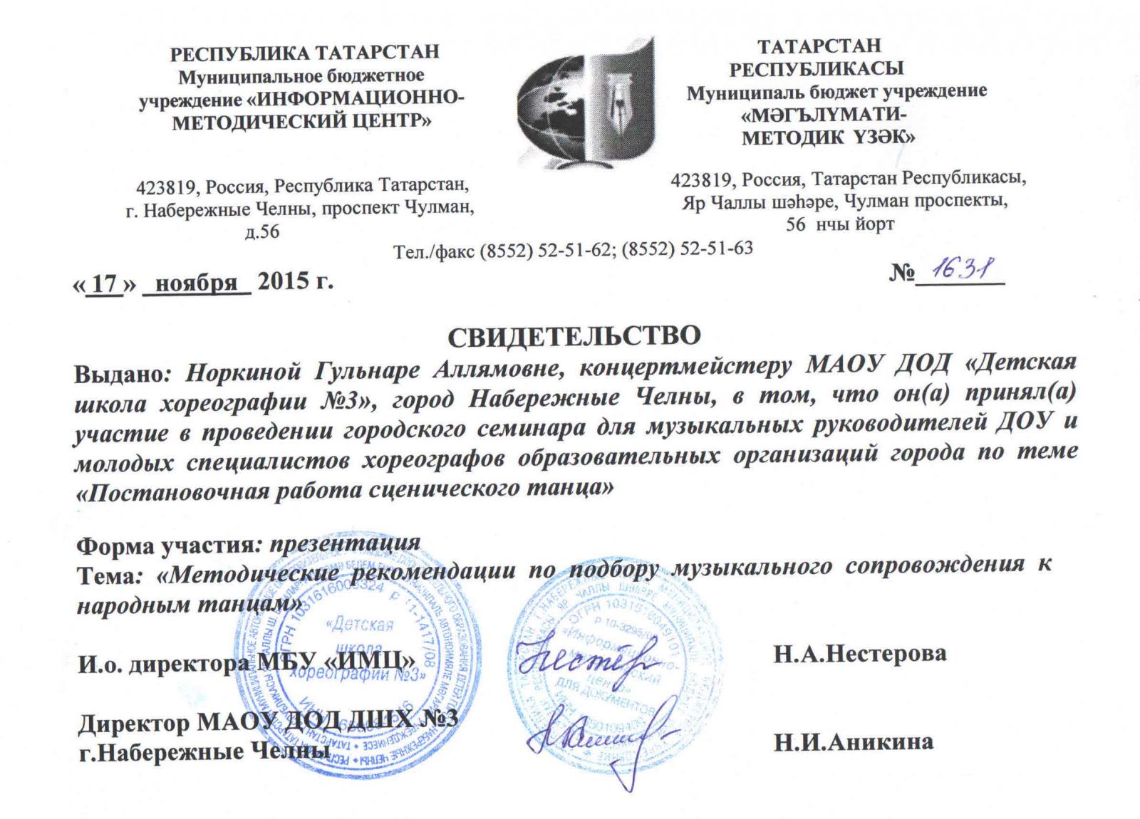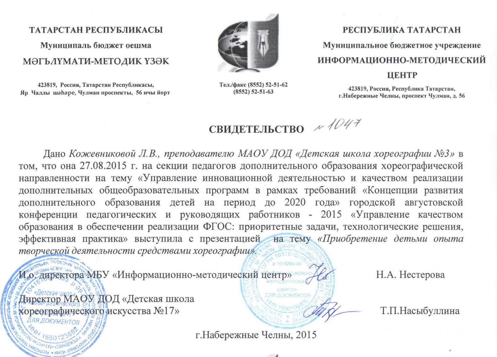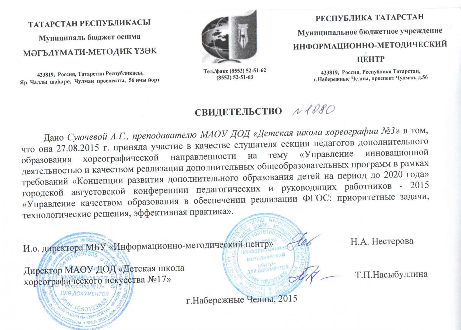 | Адрес: | 423827, Республика Татарстан, город Набережные Челны, бульвар Юных Ленинцев, дом 17 |