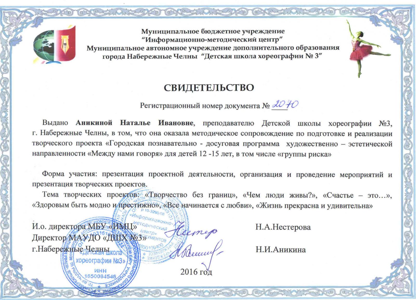 | Руководитель: | Аникина Наталья Ивановна |