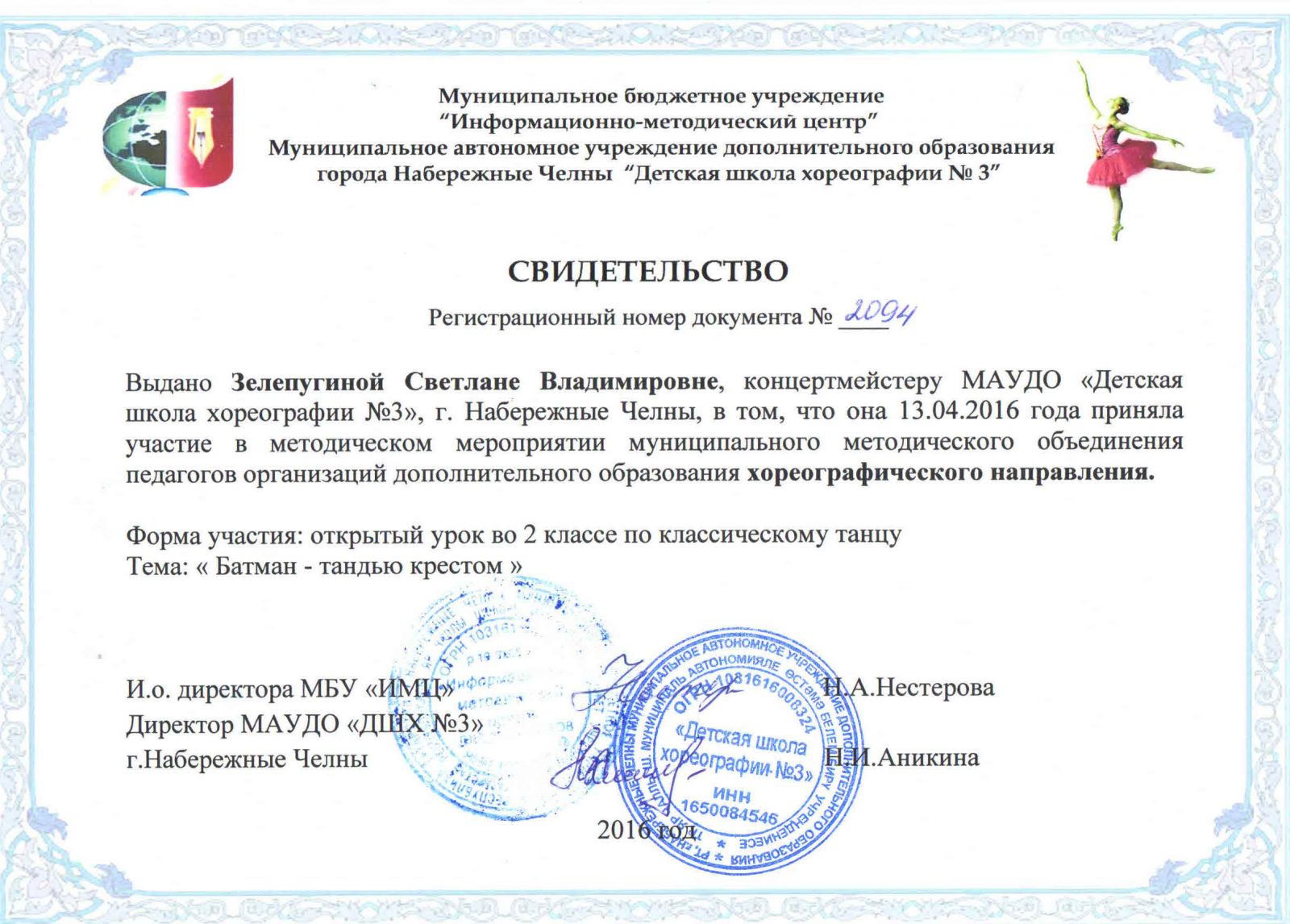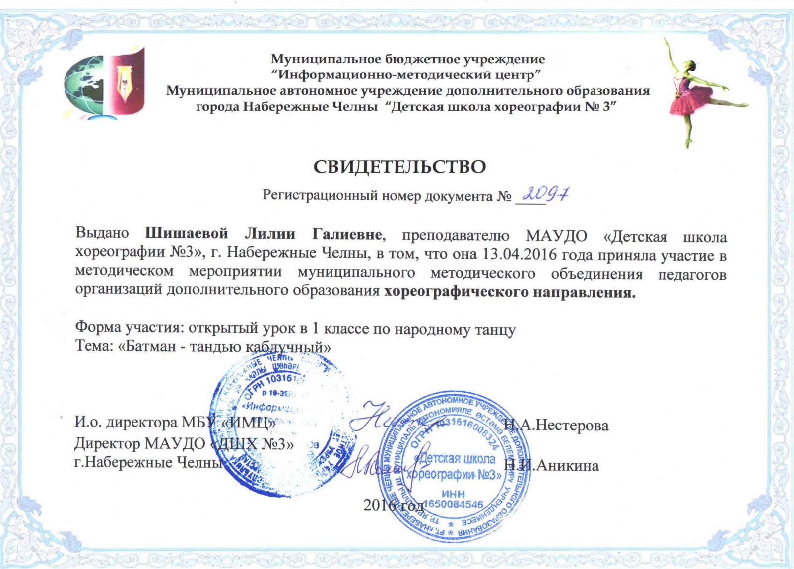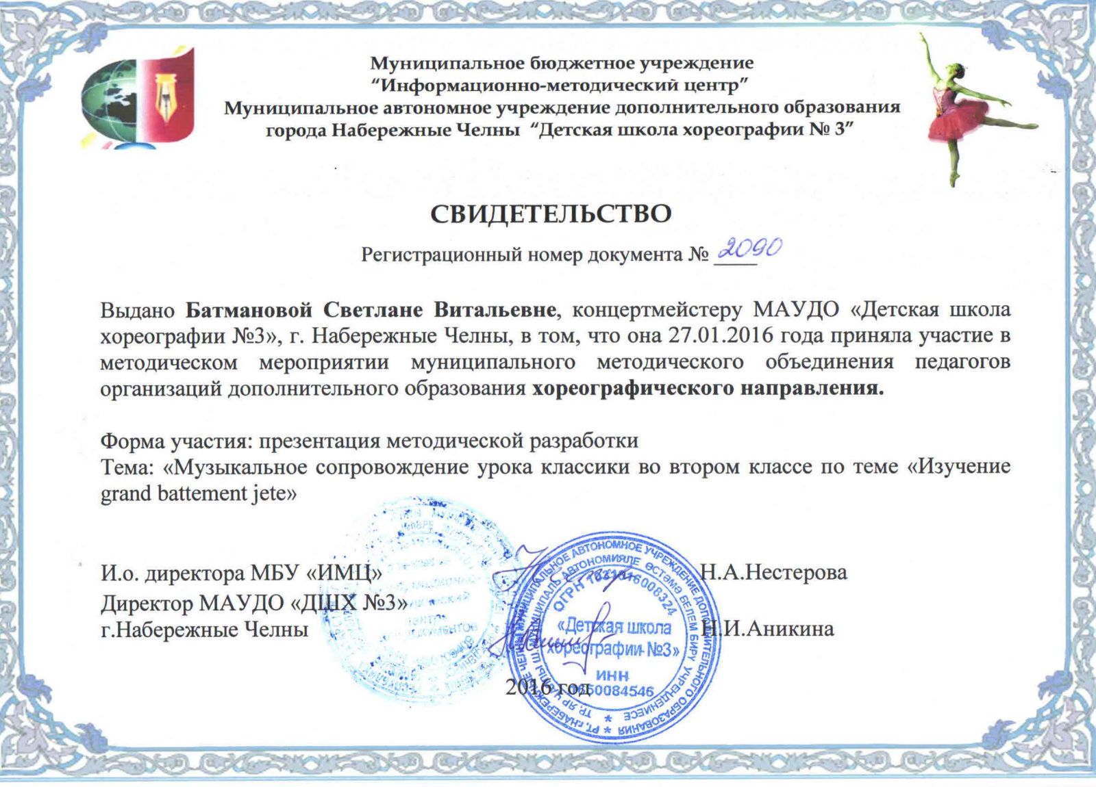| Короткое название: | МАУДО "Детская школа хореографии №3" |