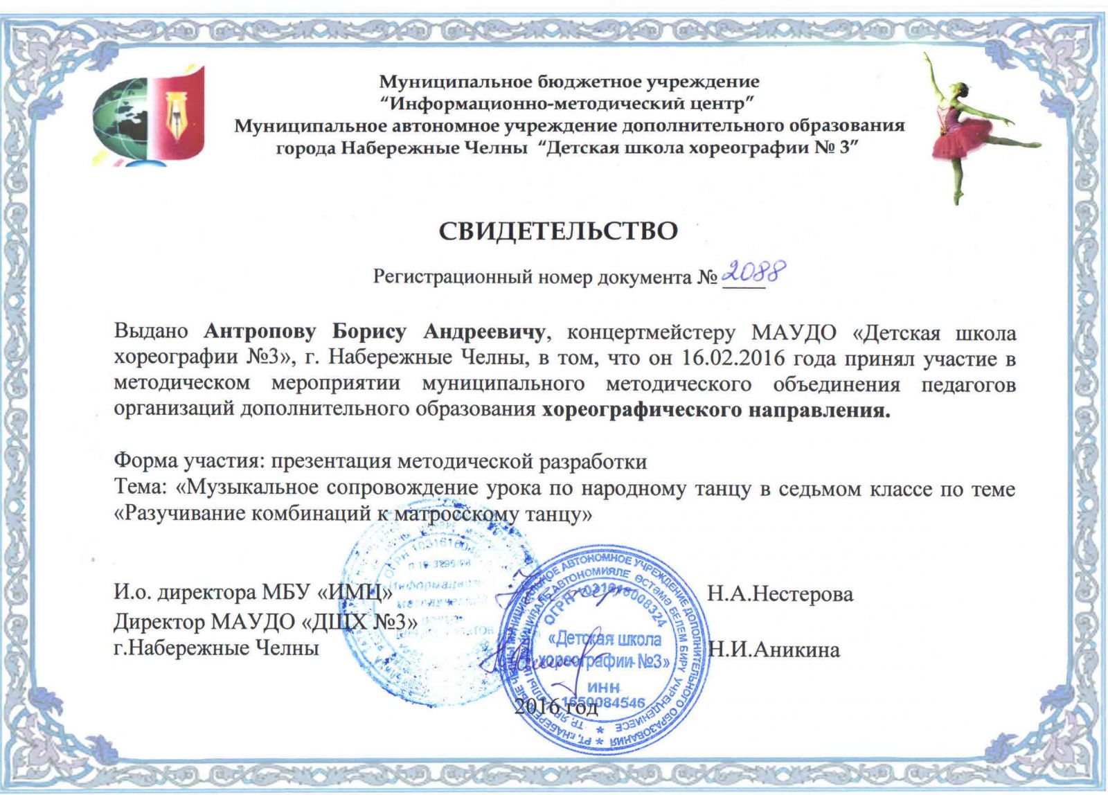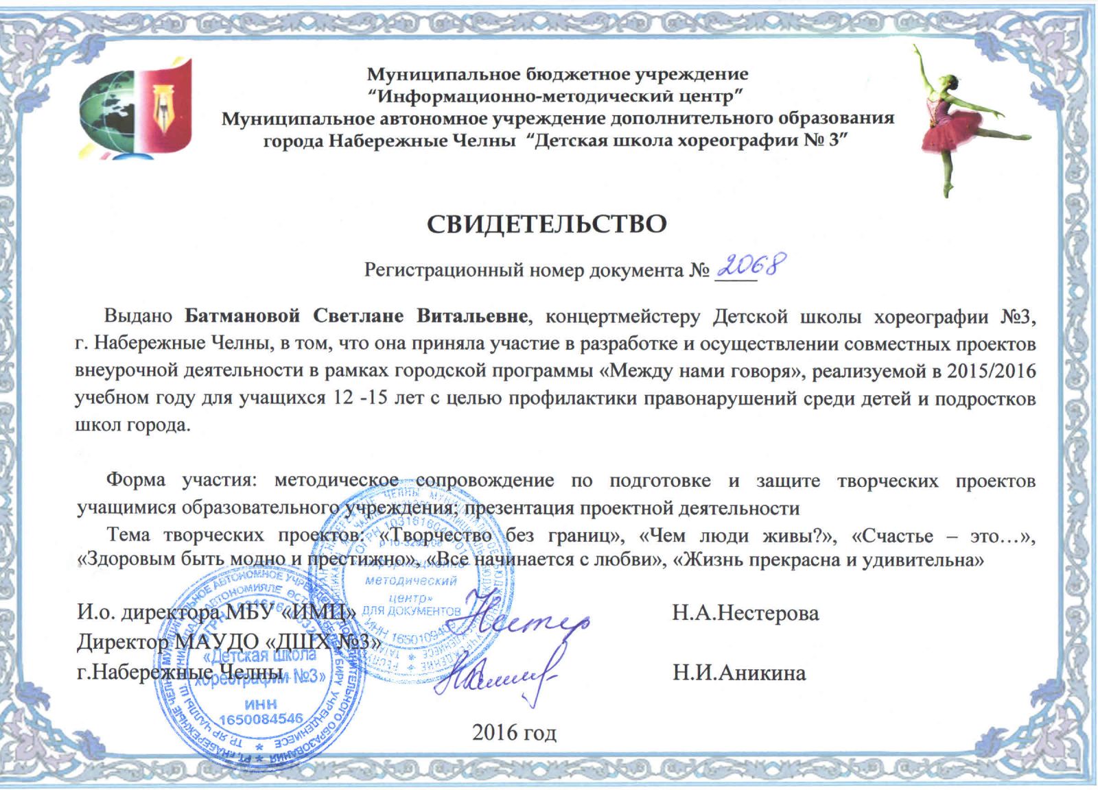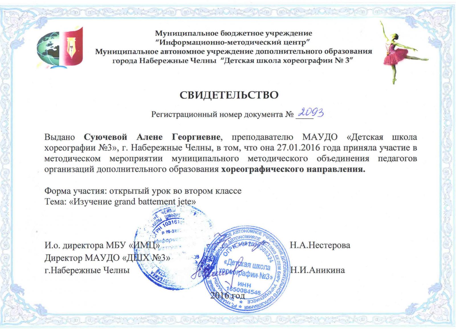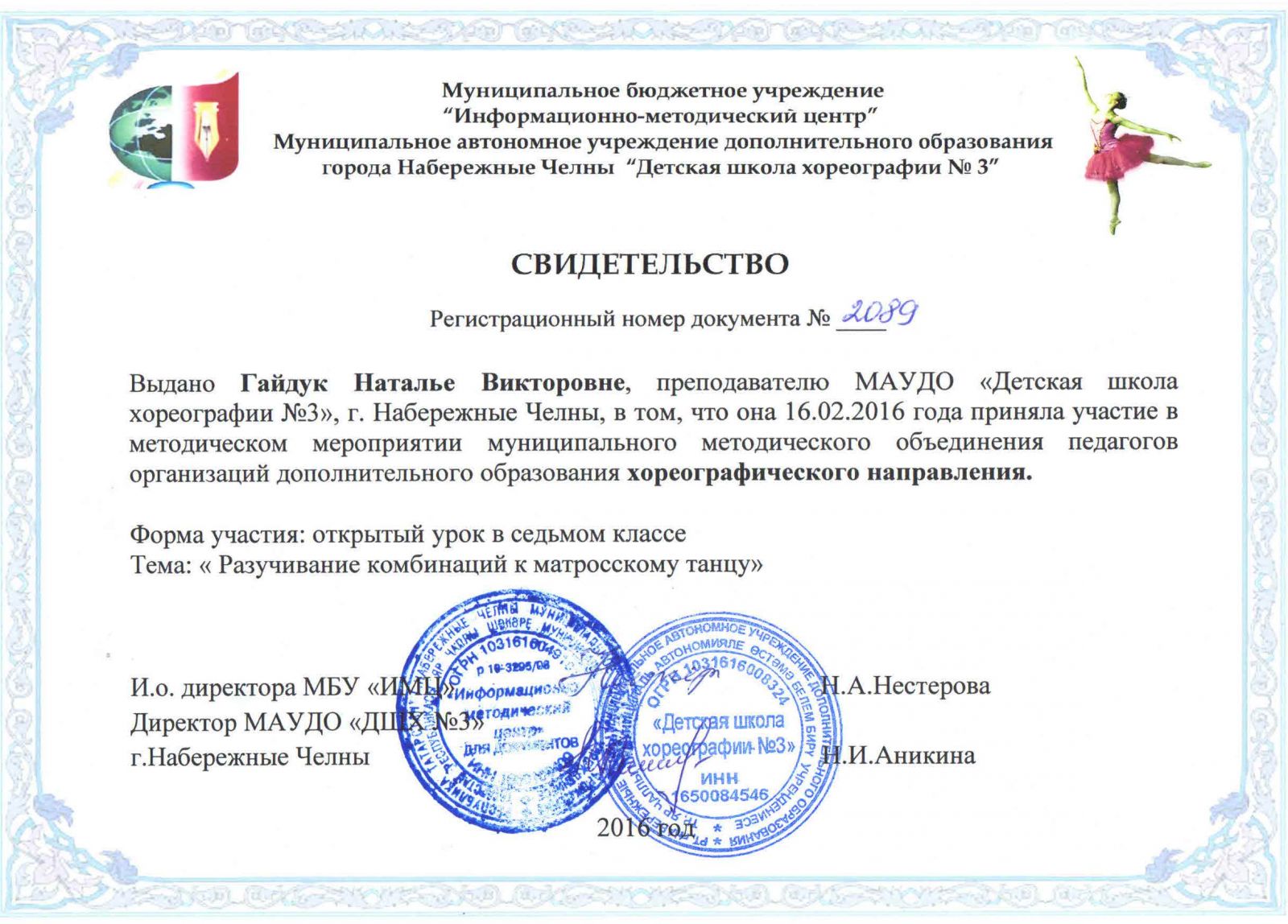 | Короткое название: | МАУДО "Детская школа хореографии №3" |