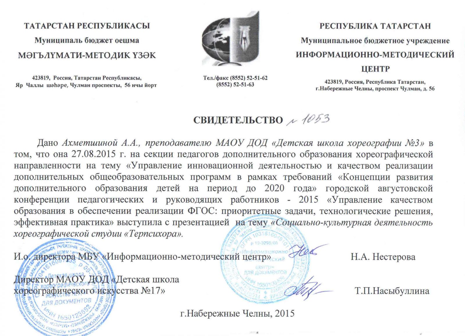 | Министерство: | Министерство образования и науки Республики Татарстан |