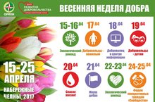 С 15 по 25 апреля 2017 года в городе Набережные Челны пройдёт добровольческий марафон «Игры доброй воли 2017» в рамках Всероссийской добровольческой акции «Весенняя неделя добра» в Республике Татарстан в 2017 году. Педагоги дополнительного образования МАУДО "ДЭБЦ№4" активно примут участие в данной акции.