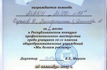 Поздравляем победителей республиканского конкурса профессионального мастерства среди учащихся 10-11 классов общеобразовательных учреждений "Мы делаем рекламу".