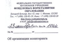 ФГАУ «Фонд новых форм развития образования», определенный распоряжением Минобрнауки России от 24 января 2017 г. № Р-46 проектным офисом приоритетного проекта "Доступное дополнительное образование для детей», утвержденного протоколом президиума Совета при Президенте Российской Федерации по стратегическому развитию и приоритетным проектам от 30.11.2019 г. № 11 (далее – Приоритетный проект), сообщает, что во исполнение сводного плана Приоритетного проекта проводится мониторинг удовлетворенности и степени заинтересованности детей и родителей (законных представителей) в освоении дополнительных общеобразовательных программ по различным направленностям. Для проведения указанного мониторинга разработана соответствующая интерактивная форма анкеты для родителей (законных представителей) детей, обучающихся по дополнительным общеобразовательным программам.В связи с этим, просим родителей детей, обучающихся в ЦДТТ № 5, заполнить анкеты не позднее 10 ноября 2017 года.Инструкцию по заполнению анкеты и ссылку на сайт Вы найдете в разделе «Доска объявлений», вкладка «Информация для родителей». -