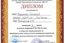 Поздравляем Подьячева Алексея, занявшего II место в классе моделей FIN-150. -