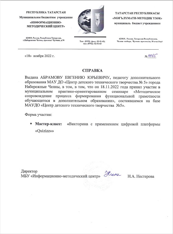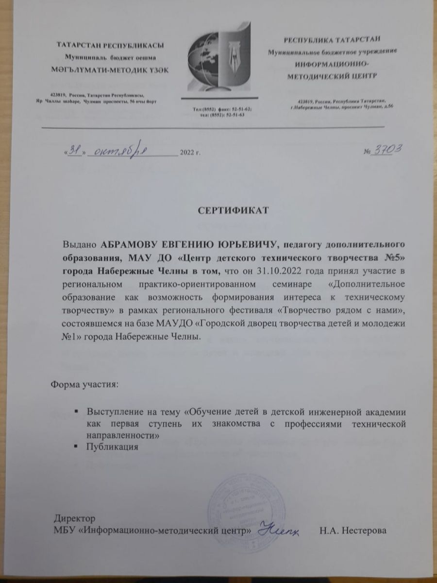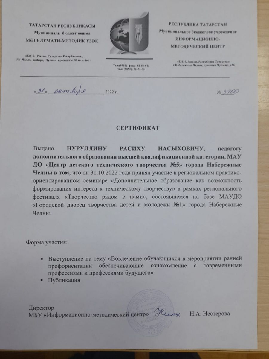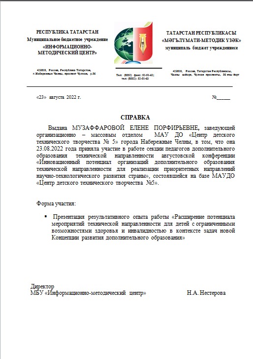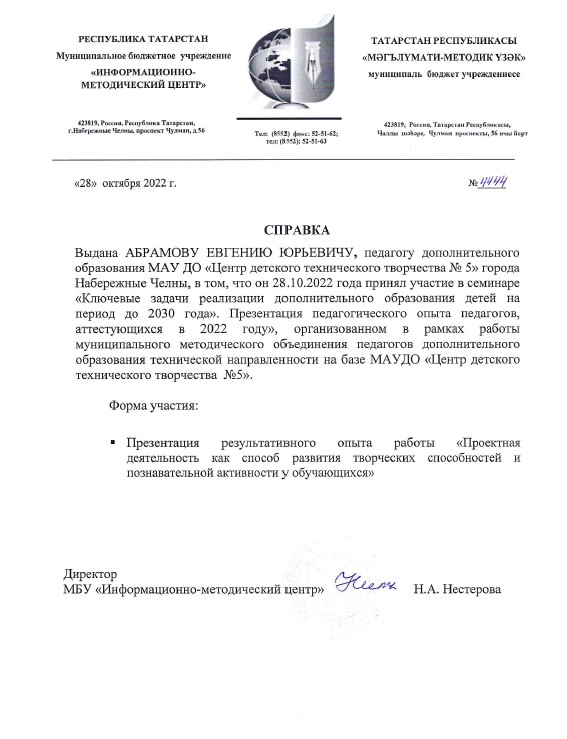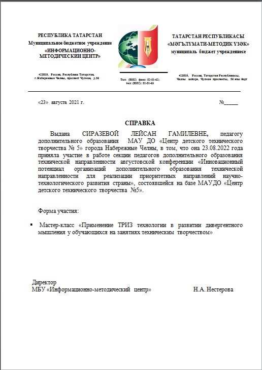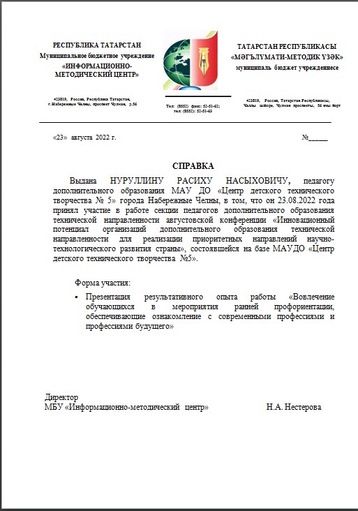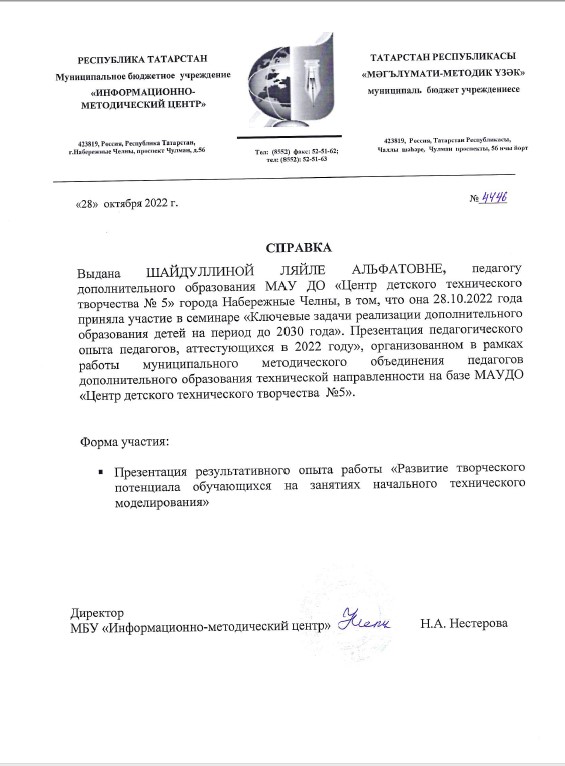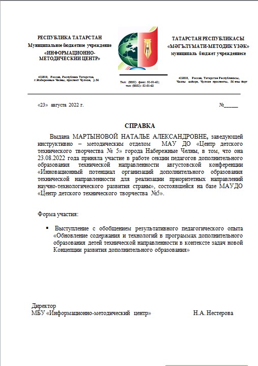 Муниципальное автономное учреждение дополнительного образования города Набережные Челны «Центр детского технического творчества № 5»/ Яр Чаллы шәһәре «5 нче балалар техник иҗат үзәге» өстәмә белем бирү муниципаль автономияле учреждениесе