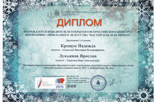 Поздравляем Преподавателей Алесееву Викторию Владимировну и Тарасову Веру Анатольевну, подготовивших лауреатов I степени Всероссийского декоративно-прикладного конурса "Мастерская Деда Мороза" 01.04.2015