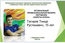 Поздравляем учащегося Детской художественной школы №2 с победой в муниципальном заочном конкурсе портфолио учащихся организаций дополнительного образования «Секреты успеха» в возрастной группе 14-15 лет Тагирова Тимура, преподаватель Шарафутдинова Г.Т. -