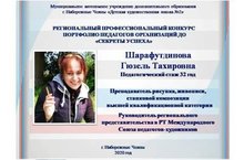 Поздравляем преподавателя Детской художественной школы №2 с победой в региональном заочном профессиональном конкурсе портфолио педагогов организаций дополнительного образования «Секреты успеха» в номинации «Портфолио профессиональной деятельности» Шарафутдинову Гюзель Тахировну. -