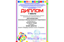 Поздравляем Тагрова Тимура, обучающегося Детской художественной школы №2, с победой в муниципалном этапе Республиканского конкурса реализованных социальных проектов "МОЯ ИНИЦИАТИВА". Благодарим за подготовку преподаватея Шарафутдинову Гюзель Тахировну.