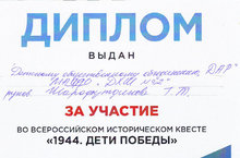 Детская общественная творческая организация "ДАР" Детской художественной школы №2 приняла участие во Всероссийском историческом квесте "1944. Дети Победы".