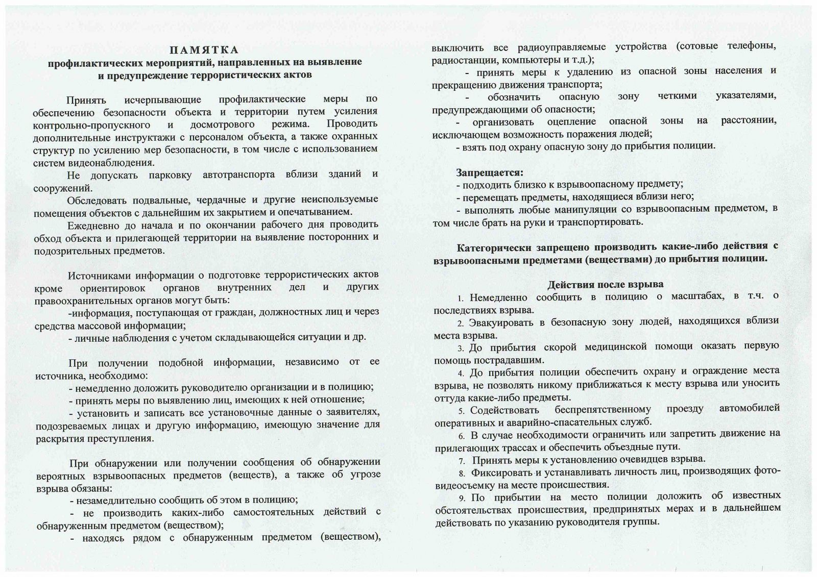 Памятка по антитеррору