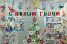 В школе проходит выставка новогодних поделок и рисунков, выполненных учащимися отделения "Студия".