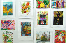 В фойе нашей школы проходит выставка творческих работ учащихся отделения "Студия", посвященная Дню Учителя.