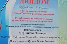 Поздравляем преподавателя Мусину Регину Раисовну и ее ученицу Черникову Эльнару с победой на III Республиканском конкурсе татарского музыкального искусства «Чулман таңнары» в номинации фортепиано - Лауреат 1 степени!