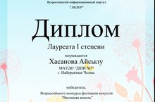 Поздравляем Хасанову Айсылу и преподавателя Хоини Риму Ильдусовну с победой! Поздравляем с прекрасным результатом и желаем дальнейших творческих успехов!!!