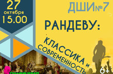 Детская школа искусств №7 приглашает Вас и учащихся Ваших организаций на музыкальный проект «Рандеву: Классика и современность» в рамках Пушкинской карты, которое состоится 27 октября в 15.00. В проекте принимают участие преподаватели Детской школы искусств№7 - лауреаты республиканских, региональных и международных конкурсов. Зрители познакомятся с композициями музыкальных классиков, а так же переложений композиций современных композиторов.