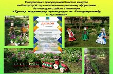 Поздравляем с присуждением Школе 3 места в конкурсе по благоустройству и озеленению и цветочному оформлению Автозаводского района в номинации "Лучшая территория организации по благоустройству и озеленению." Особые слова благодарности выражаем нашему неутомимому генератору идей и творческого вдохновения - дворнику-дизайнеру Светлане Юрьевне Халтобиной! Желаем новых идей для яркого воплощения! Креатива, творчества и вдохновения!
