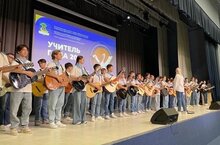Сегодня учащиеся нашей школы и участники городской программы «Клуб любителей гитары» приняли участие в церемонии награждения по итогам муниципального этапа Всероссийского конкурса «Учитель года России». З7 гитаристов и 37 вокалистов исполнили песню барда Александра Городницкого «Атланты».