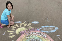 - сделать рисунок на асфальте....и разместить в сети Instagram и ВКонтакте по хештегом #1июнярт