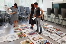 На художественном отделении и отделении дизайна полным ходом идет подготовка к просмотру работ учащихся. Работ так много, что их приходится раскладывать даже на полу...