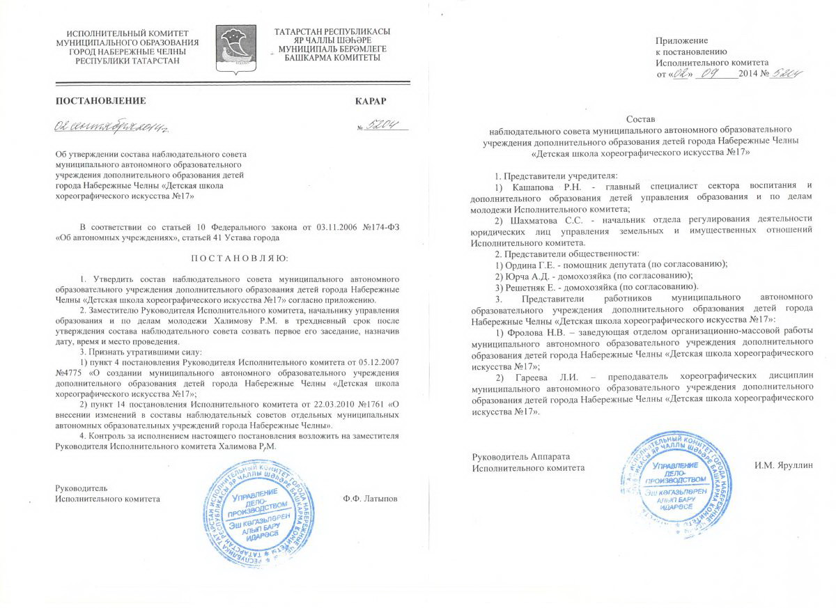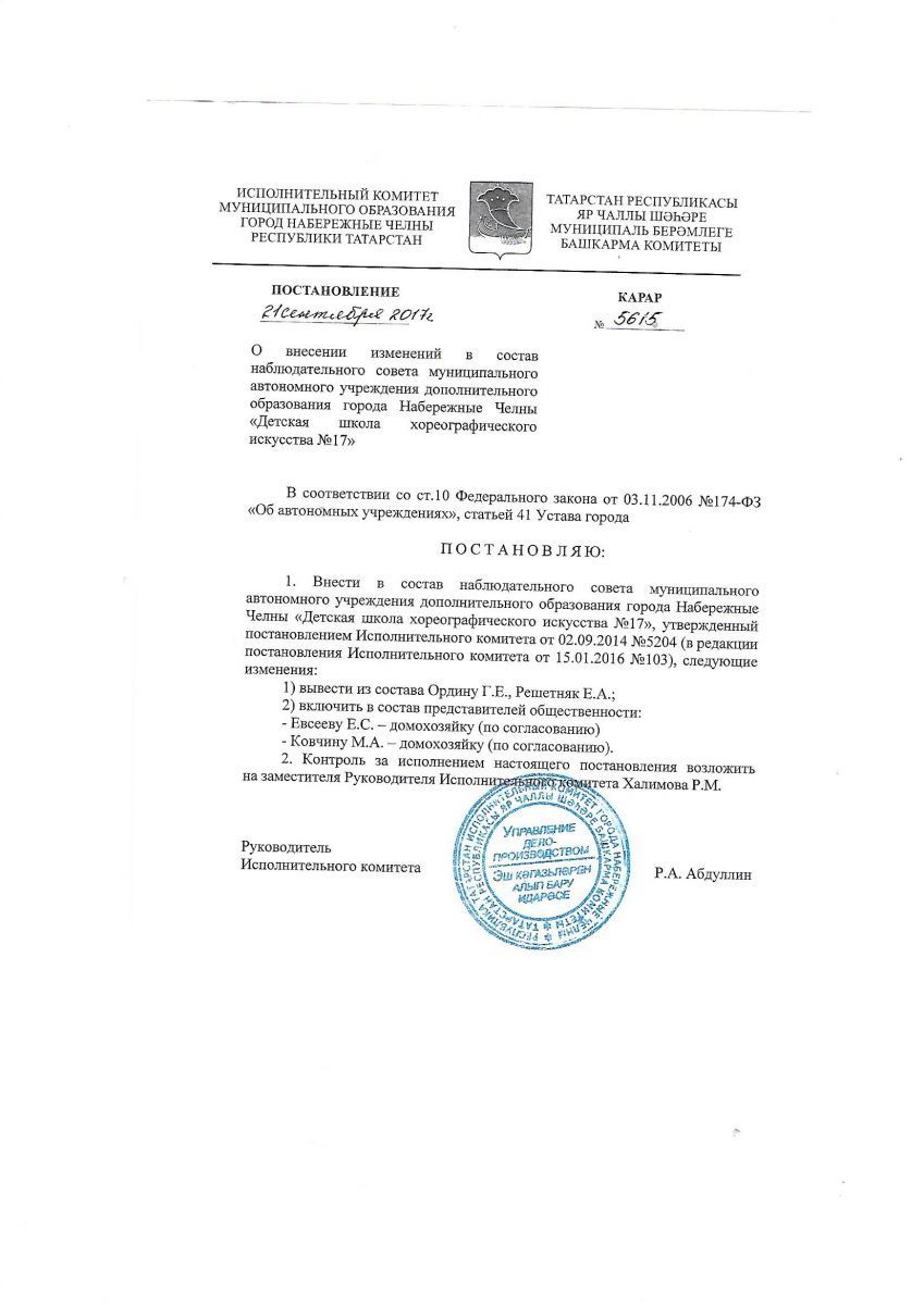 Постановление о внесении изменений в состав наблюдательного совета 2017 год