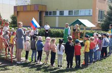 Сегодня в детском саду прошел праздник, посвященный Дню России. Гостями праздника были сказочные герои – Василиса Премудрая и Алёнушка, которые рассказали детям об истории России, поиграли в народные игры. Но праздник на этом не закончился. Потому что ребят ждали игры - эстафеты, народные игры, конкурс рисунков на асфальте.
