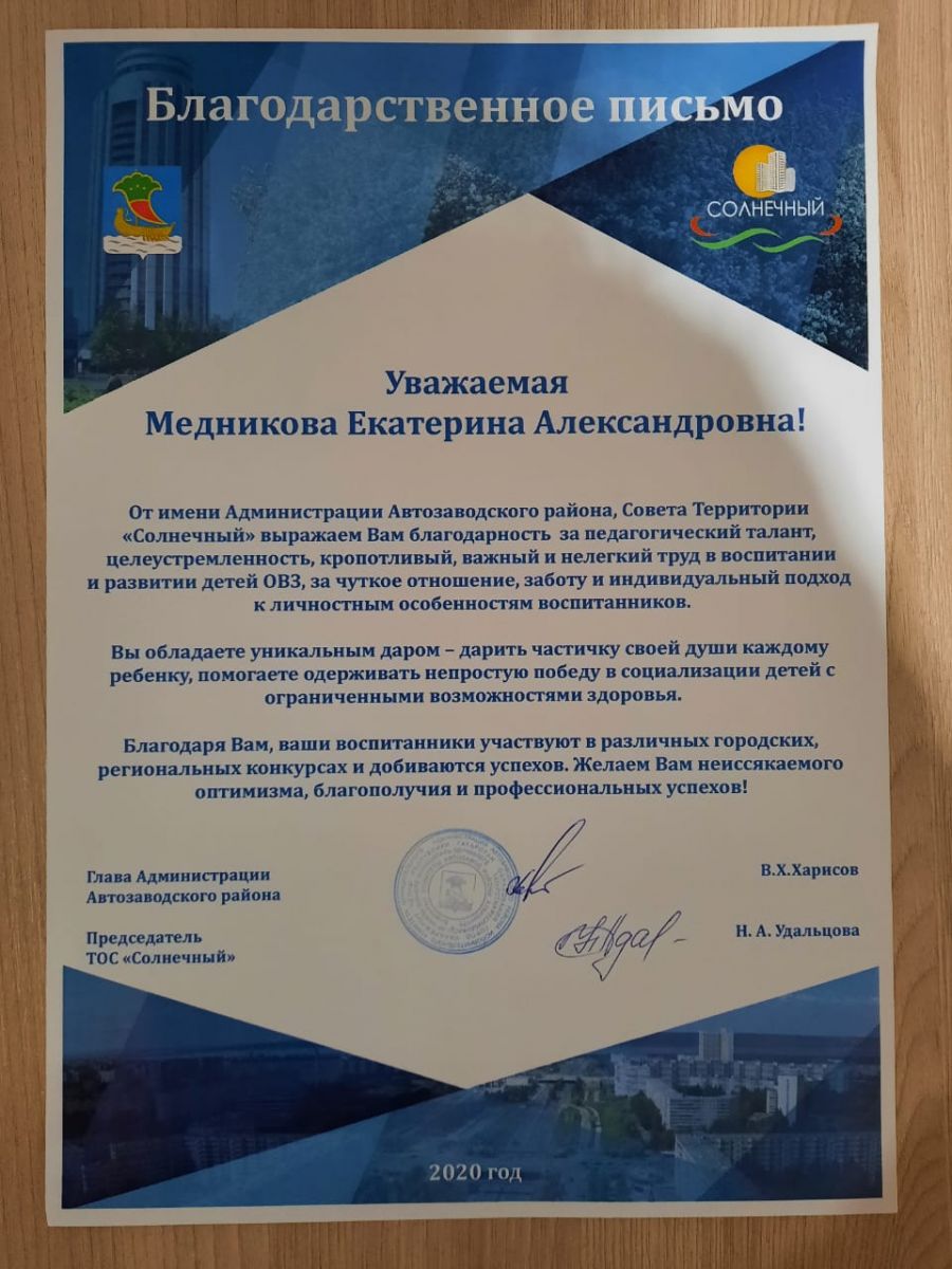Сегодня в волшебном, новогоднем зале нашего детского сада чествовали лучших работников дошкольного образования. Двое воспитателей: Иванова Надежда Владимировна и Медникова Екатерина Александровна получили благодарственные письма от администрации Автозаводского района нашего города, а младший воспитатель Андрианова Елена Георгиевна была награждена благодарностью от Исполнительного комитета города Набережные Челны. Они награждены за многолетнюю, добросовестную работу; за профессионализм, чуткое отношение к детям, заботу, внимание, индивидуальный подход к каждому ребенку.