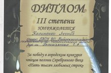 17 и 22 марта в Центральной городской библиотеке г. Набережные Челны проходил конкурс чтецов поэзии Серебряного века «Пять тысяч любимых строк». В исполнении стихотворений соревновались учащиеся школ, студенты колледжей и техникумов города. В конкурсе приняли активное участие 20 студентов факультета СПО НГТТИ. Ребята читали стихотворения Анны Ахматовой, Сергея Есенина, Александра Блока, Марины Цветаевой.