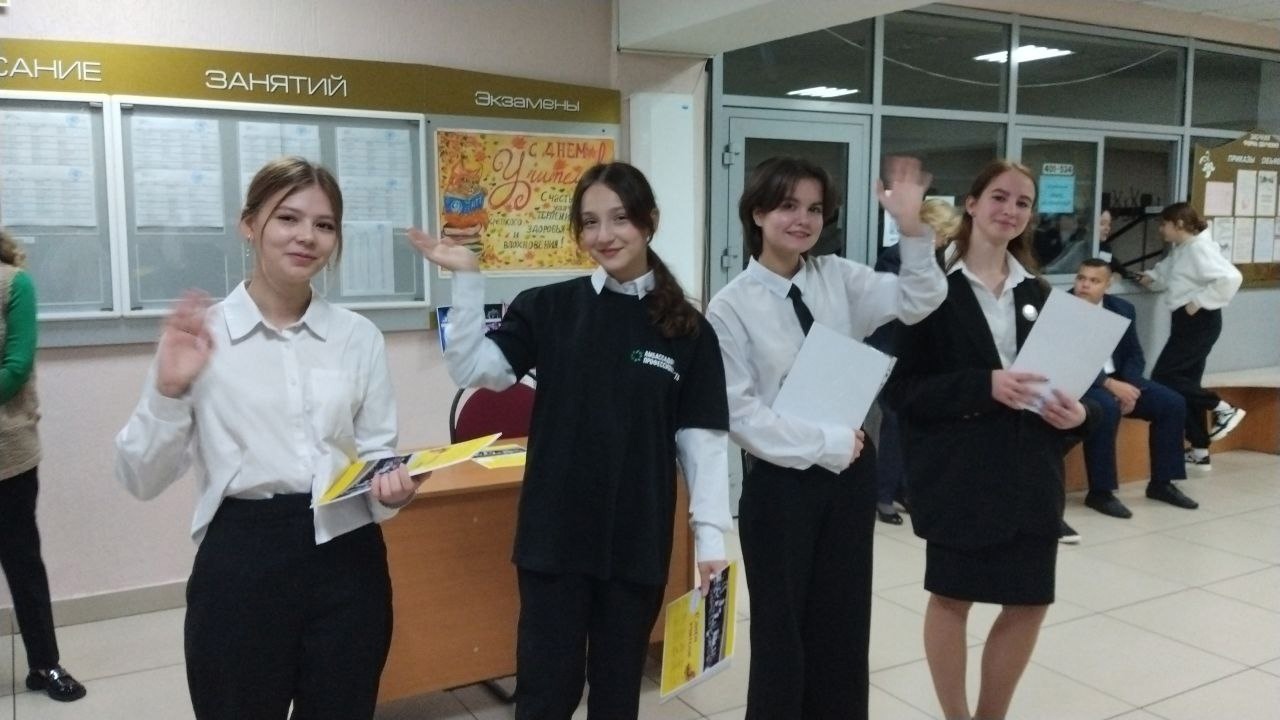 Амбассадоры профессионалитета, вместе с активистами встречали преподавателей на входе и вручали памятные подарки.