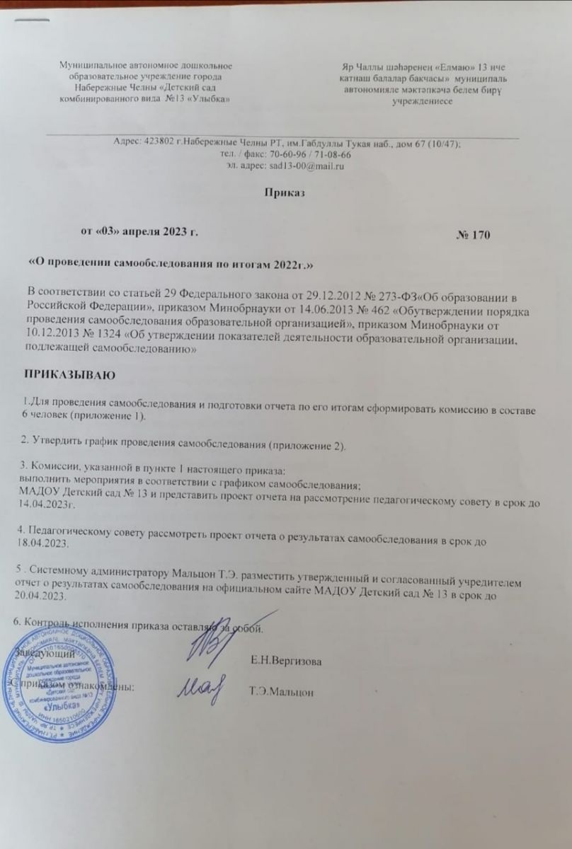 отчет о деятельности МАДОУ "Детский сад № 13 "Улыбка" за 2022 отчетный год