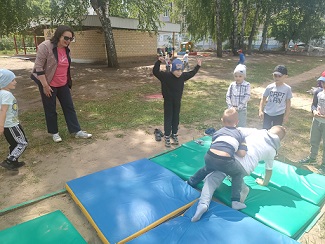 На наш праздник в гости пришли герои из сказок Г.Тукая Батыр и Шурале. Они вместе с детьми веселились, слушали песни и стихи детей, потом вместе с детьми соревновались в силе, ловкости и выносливости, поиграли в игры соревновательного характера : " Бег в мешках", "Конные скачки", "Перенеси яйцо", "Перетяни канат", " Прыжки в мешках" . В конце праздника проводилась "борьба - көрәш" - определили настоящего Батыра .