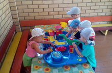 В июле в наш детский сад поступили новички, они радостно встретили своих новых воспитателей и их помощников, а так же новенькие, подготовленные для них, группы. Правда, пока разлуку с мамой длительное время переносить им трудно. Но все взрослые знают, что лучшее лекарство от стресса – окунуться с головой в работу. Вот и наши малыши активно занимаются своей главной работой – исследованием окружающего мира. Нашим исследователям больше понравилось изучать свойства воды с помощью самых разнообразных приспособлений. Вода имеет одно коварное свойство – все, кто к ней прикасается - тут же становится мокрым, но в такую жаркую погоду нам это не страшно, ведь солнышко заботится о том, чтобы наши исследователи быстро высыхали. Таким образом, период адаптации проходит для малышей радостно. Вместе с воспитателями они осваивают новые способы взаимодействия, учатся новым играм, изучают пространство групп и участков, где так много интересного!