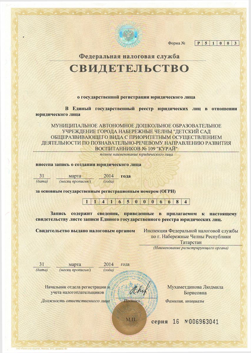 Короткое название: МАДОУ "Детский сад комбинированного вида № 109 «Курай»