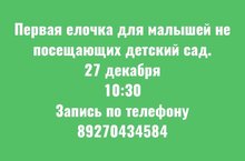 27 декабря в 10.30 Консультационный Центр "Мир детства" приглашает детей не посещающих детский сад на новогоднюю елку. Запись по телефону 89270434584