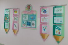 Воспитанники старшей группы №1 совместно с родителями и воспитателем организовали выставку рисунков на тему : "Наш любимый детский сад".