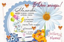 Поздравляем от всей души с прекрасным праздником – Днем матери! Желаем душевного тепла и спокойствия, мира в душе, семейного счастья. Пусть жизнь дарит удачу во всем, радостные, счастливые моменты, много веселых улыбок и прекрасное настроение каждый день. Желаем здоровья, бодрости, энергии и неувядающих сил!