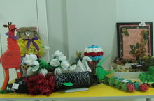 В детском саду организована выставка-конкурс "Фантазия" в рамках "Экоконференции" программы "Эко-школы/Зеленый флаг в городе Набережные Челны, где представлены работы из бросового материала.