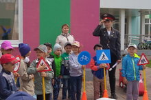 На площадке автогородка проходили обыгрывания игровых ситуаций "На улицах города".