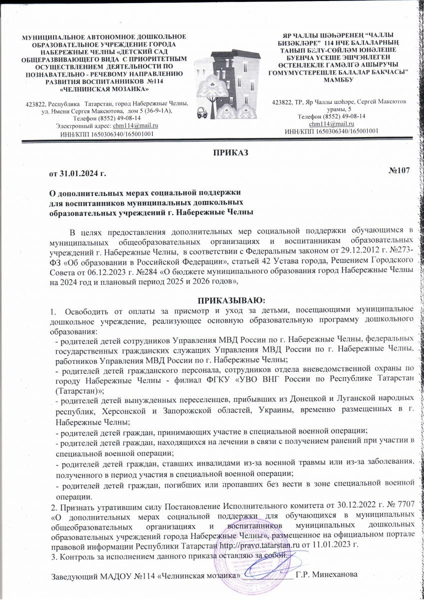 Приказ о дополнительных мерах социальной поддержки для воспитанников