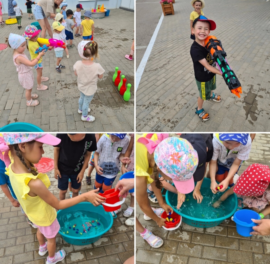 В подобных случаях игры с водой просто незаменимы: вода, обладающая значительной теплоемкостью, оказывает охлаждающее воздействие.