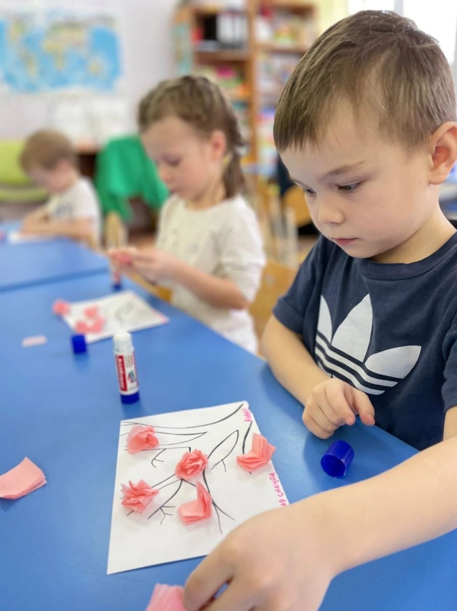 Ветка сакуры популярна не только в Японии, но и в наших краях. Существует масса вариантов поделок, которые станут актуальными в интерьере помещения. Сегодня воспитанники группы 3 под руководством воспитателя Анжелики Анатольевны сделали аппликацию на тему "Цветущая сакура"с использованием метода скручивания салфеток.