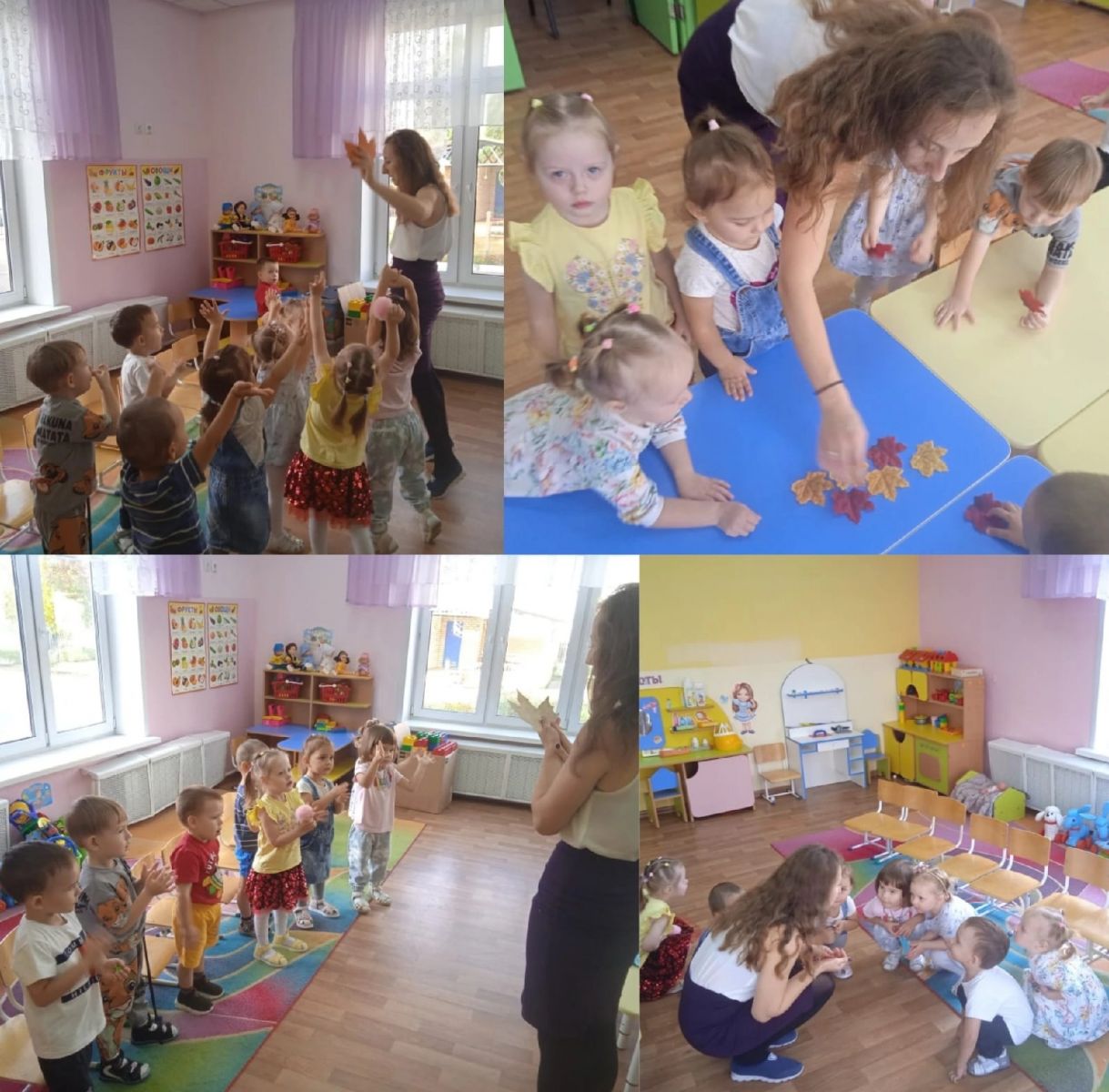 Еженедельно в нашем детском саду педагогом-психологом Юлией Александравной проводятся развивающие групповые занятия в I и II младших группах. Такие занятия создают в группе эмоционально комфортную атмосферу; обучают детей взаимодействовать друг с другом; развивают внимание, память, восприятие, речь, воображение и мышление; развивают чувства ритма, общую и мелкую моторику, координацию движений.