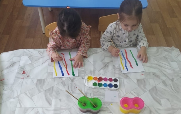 Творчество, Вернее рисование в 1 младшей группе 11 на тему "Разноцветные линии".