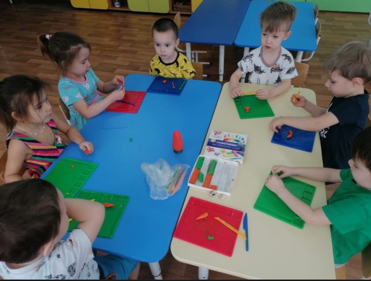 Воспитанники группы 10 сегодня лепили морковку для зайчика. Дети очень старались