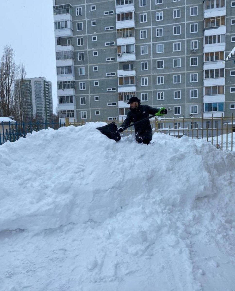 На борьбу с последствиями сильнейшего снегопада родители нашего детского сада вышли всей семьей.