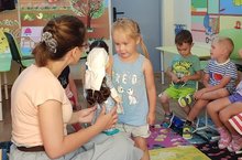Наши юные воспитанники знакомятся с новыми куклами, умеющими говорить на татарском языке 17.07.2020